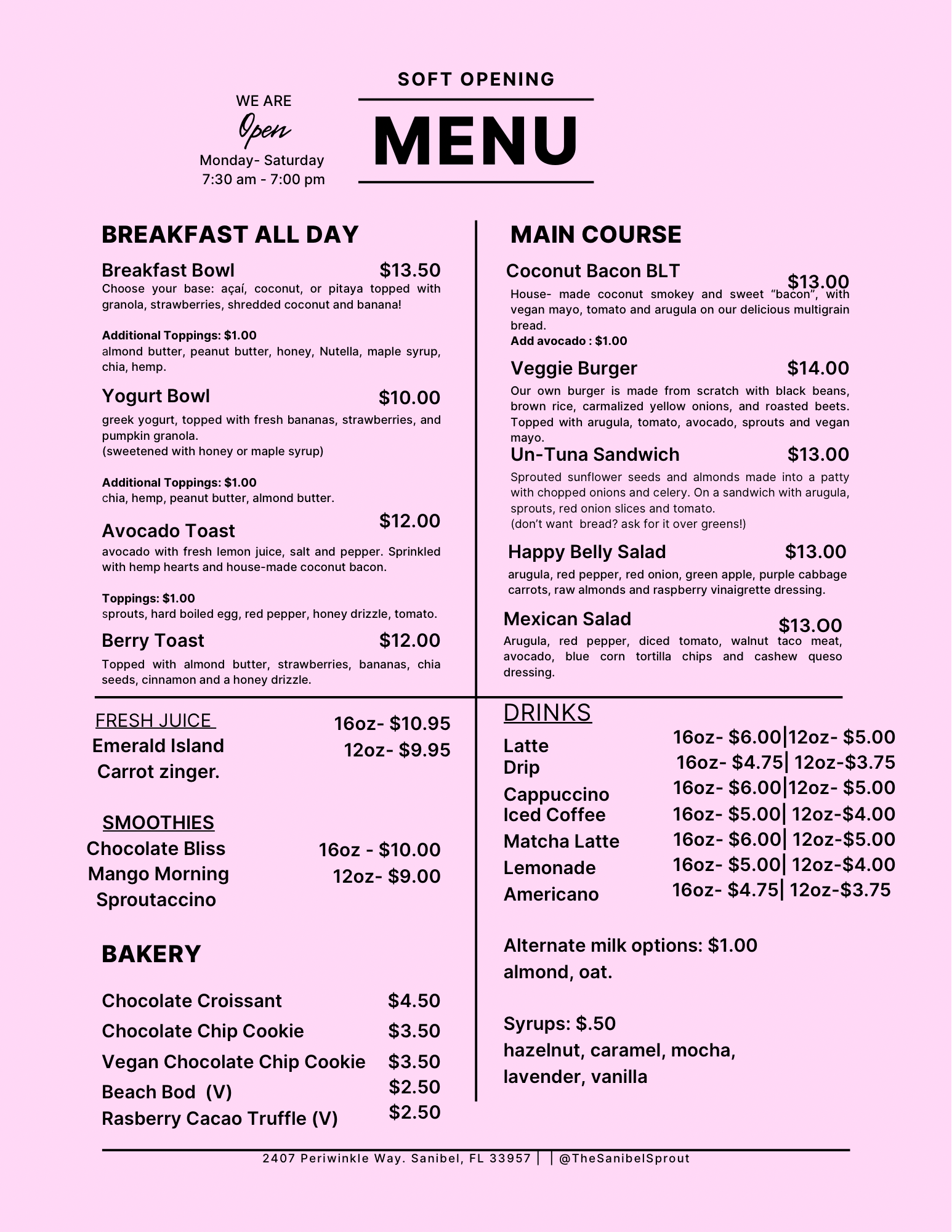 Come enjoy fresh and healthy acai bowls, toasts, juice, coffee, and more !